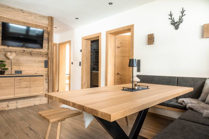 Besonders schön ist der große Balkon mit gemütlicher Sitzgarnitur, von dem du einen herrlichen Blick auf die Leoganger Bergwelt genießen kannst – begleitet vom beruhigenden Rauschen des nahegelegenen Bachs.